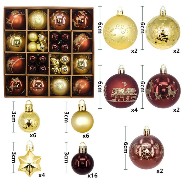 Enhance your holiday decor with the Hadineeon 44 Piece Coffee Gold Christmas Ornament Set. These ornaments feature intricate patterns and a mix of matte, shiny, and glitter finishes, perfect for adding a sophisticated touch to your Christmas tree. Suitable for various decor styles, these ornaments are great for home, office, or party decorations.