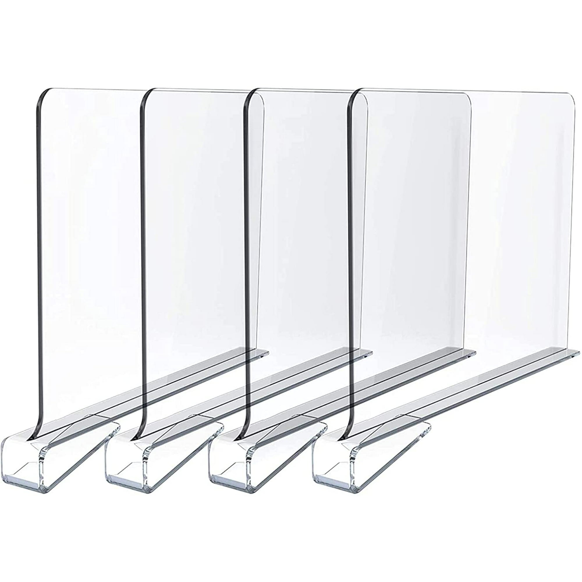 Shelf dividers help you organize items by separating different categories, and also keep items from one stack or pile from toppling over onto another stack of pile, so once you've got your closet organized you can keep it that way. Use our NBW All Purpose Clear Acrylic Shelf Dividers to organize your cluttered closets, keep T-shirts, sweaters, towels, purses and shoes neatly separated, expand storage space, make your closets more tidy and easy to use!